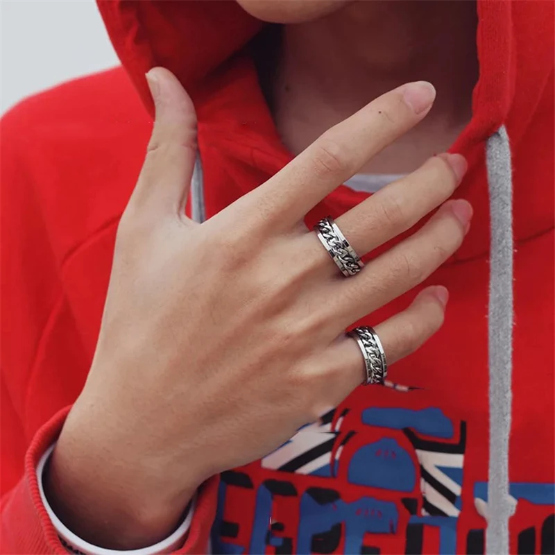 Модное и классное мужское кольцо из титановой стали, вращающаяся цепь высокого качества в стиле панк, женское ювелирное изделие, подарок вечерние, 2021