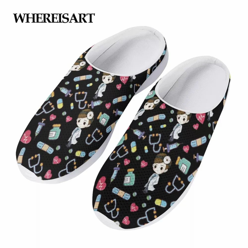 WHEREISART летние женские повседневные сандалии для мужчин и женщин с рисунком доктор медицинский инструмент с принтом Повседневная обувь без застежки; Обувь с дышащей сеткой на плоской подошве; Обувь; Новинка