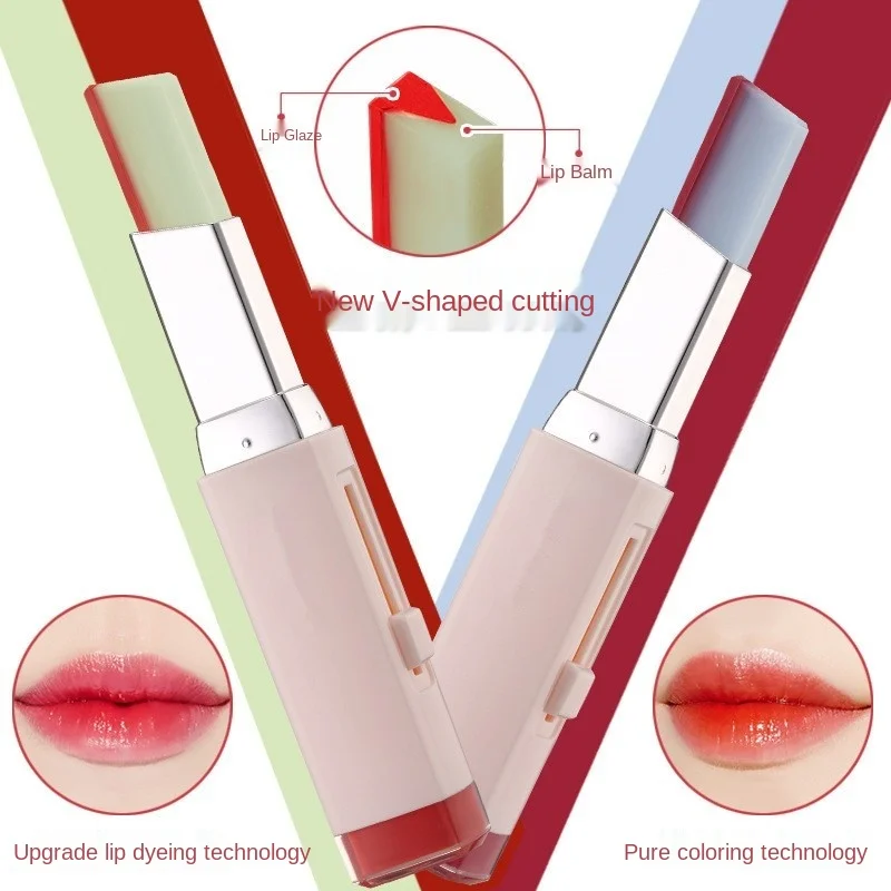 Модная Корейская губная помада с V-образным вырезом, двухцветный ТИНТ, шелковистый увлажняющий органический бальзам для губ, косметика, градиентный цвет
