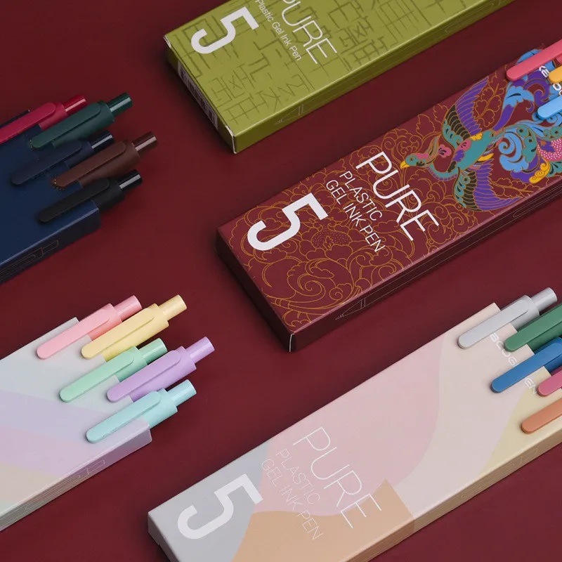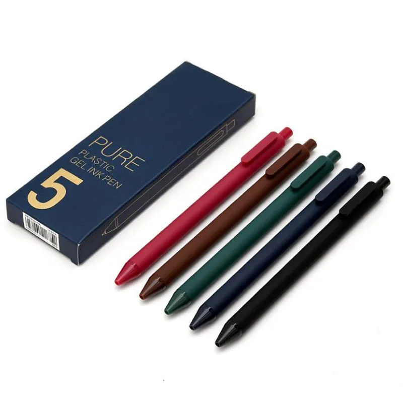 5 шт.кор. Ретро Ручки гелевые темные выдвижные 0,5 мм тонкие темно-красныезеленыекоричневыесиние Черные ручки для записей