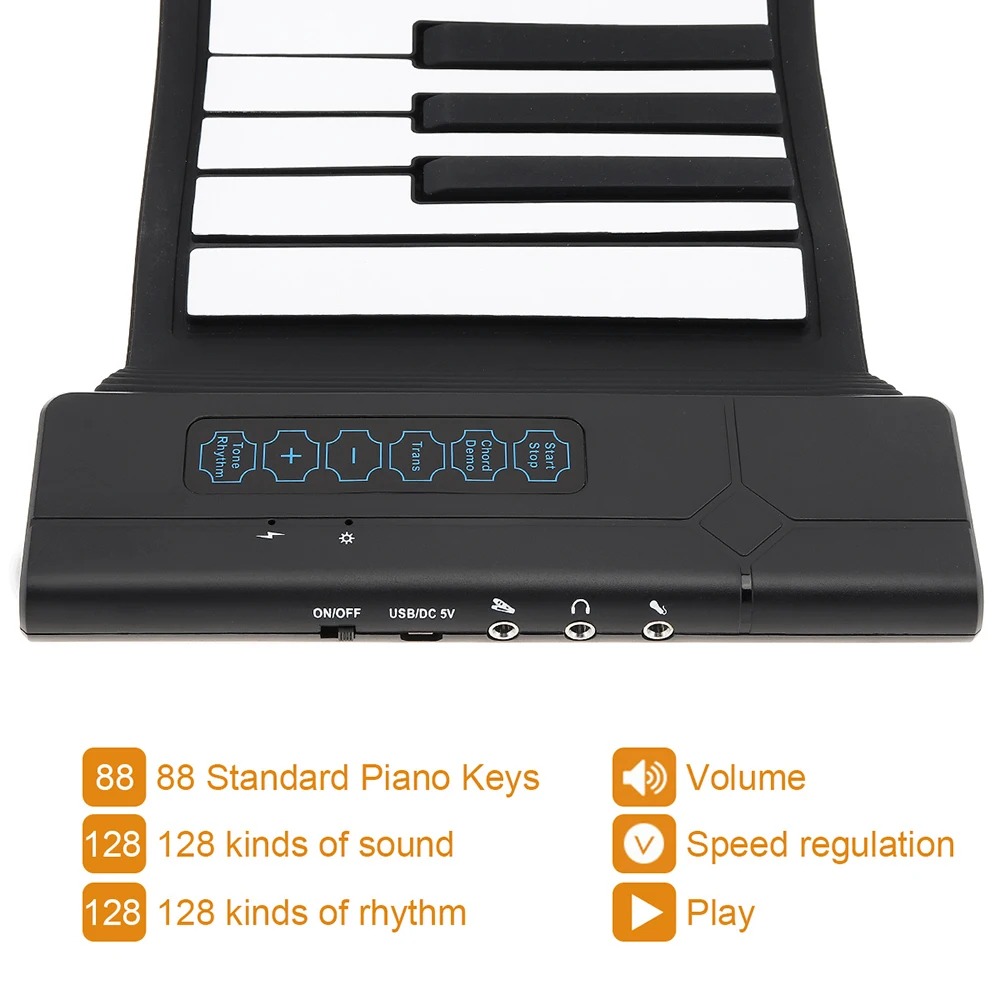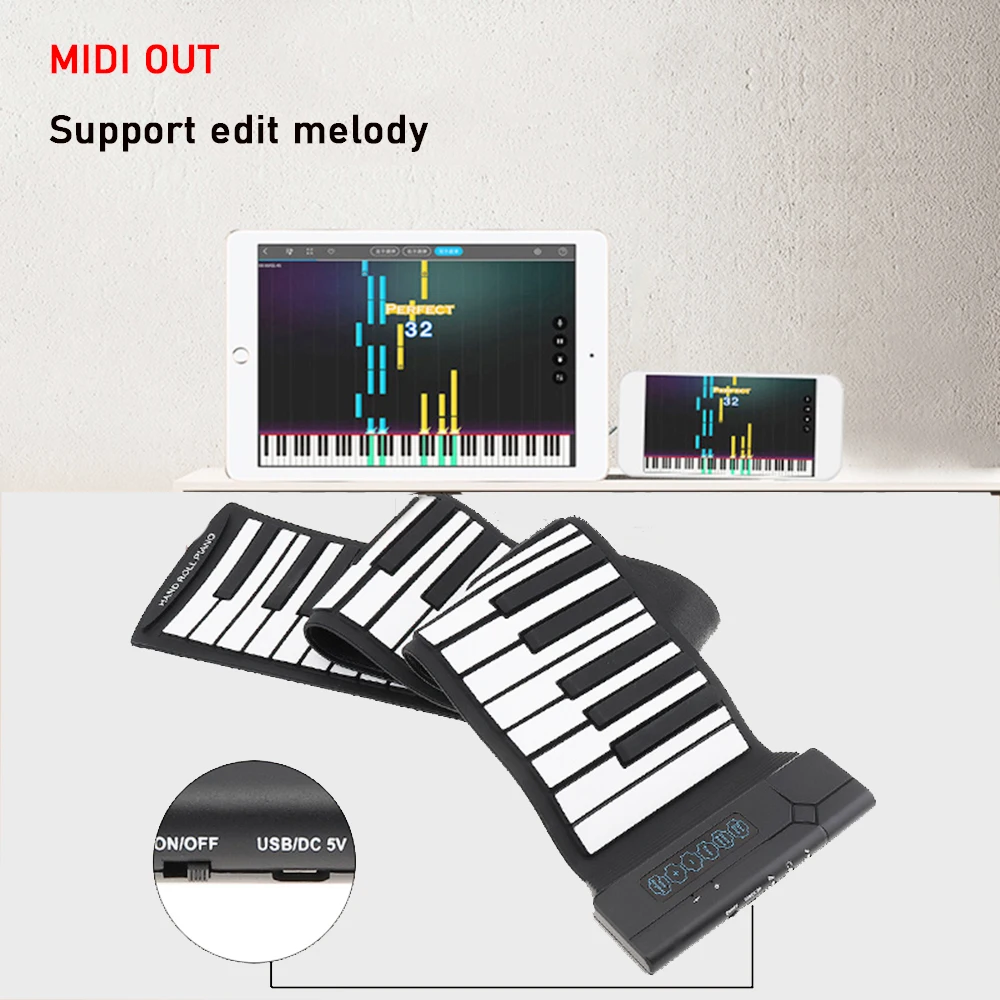 Складная Мягкая силиконовая клавиатура с USB 6188 клавишами, складной гибкое пианино, электронный пианино