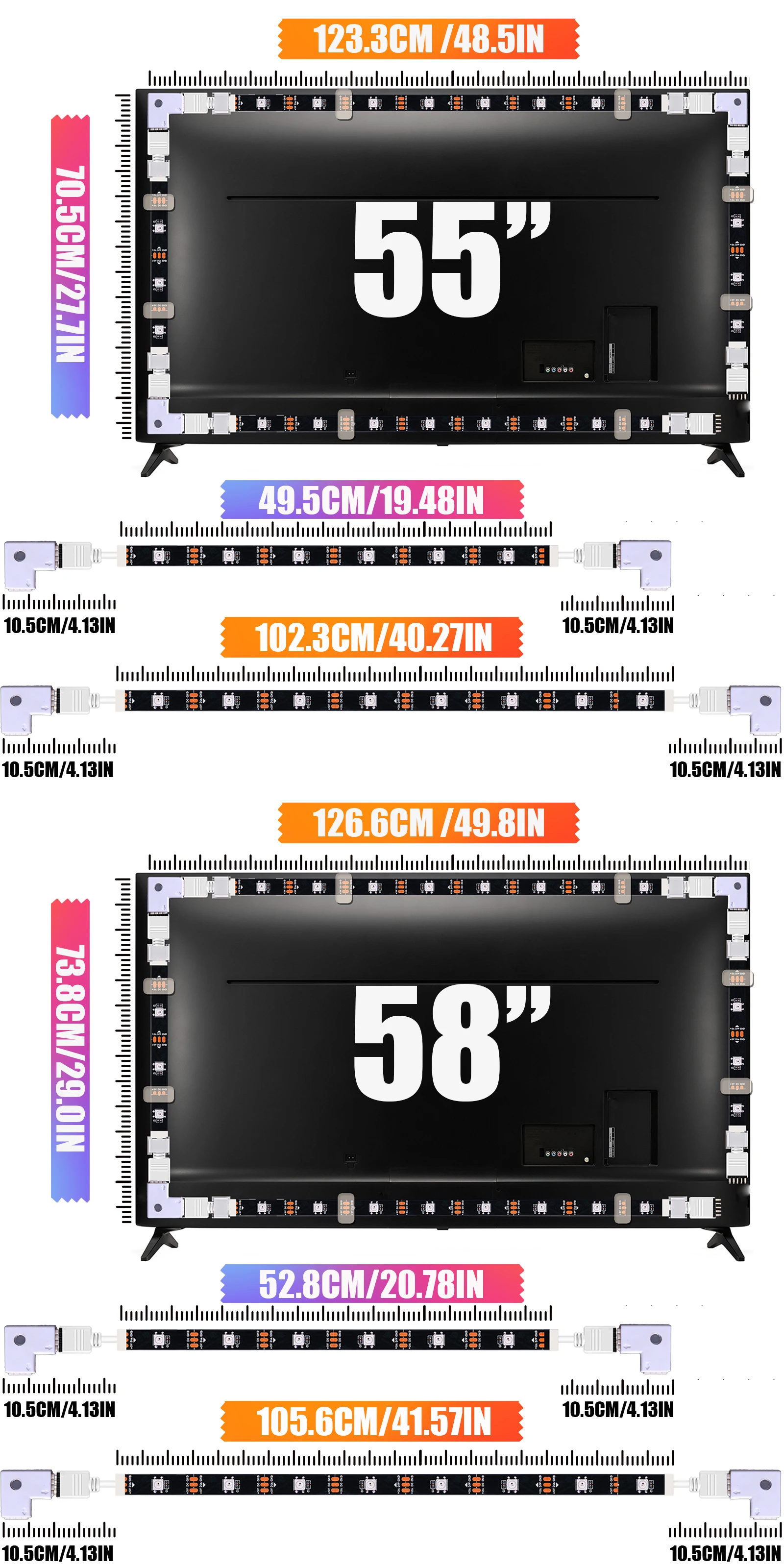 Продукт был довольно легко помещается на TV Samsung, немного длиннее, чем я ожидал для 49 дюймового телевизора. Функциональность в умной жизни работает так, как ожидалось. Инфракрасный не очень мощный, как со всеми этими светодиодными лампами (у меня есть 4 других производителя). Будьте осторожны при установке, так как полоса тонкая. Вам нужно 2 ампер usb зарядное устройство и, вероятно, 1 метр usb удлинитель (с нормальным штекером, а также гнездовой разъем для розетки). Телевизор обеспечивает только 1 Ампер от usb, поэтому имейте это в виду.