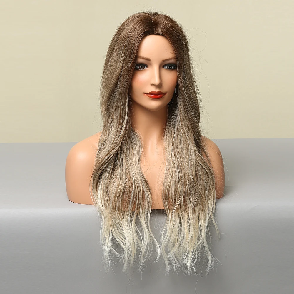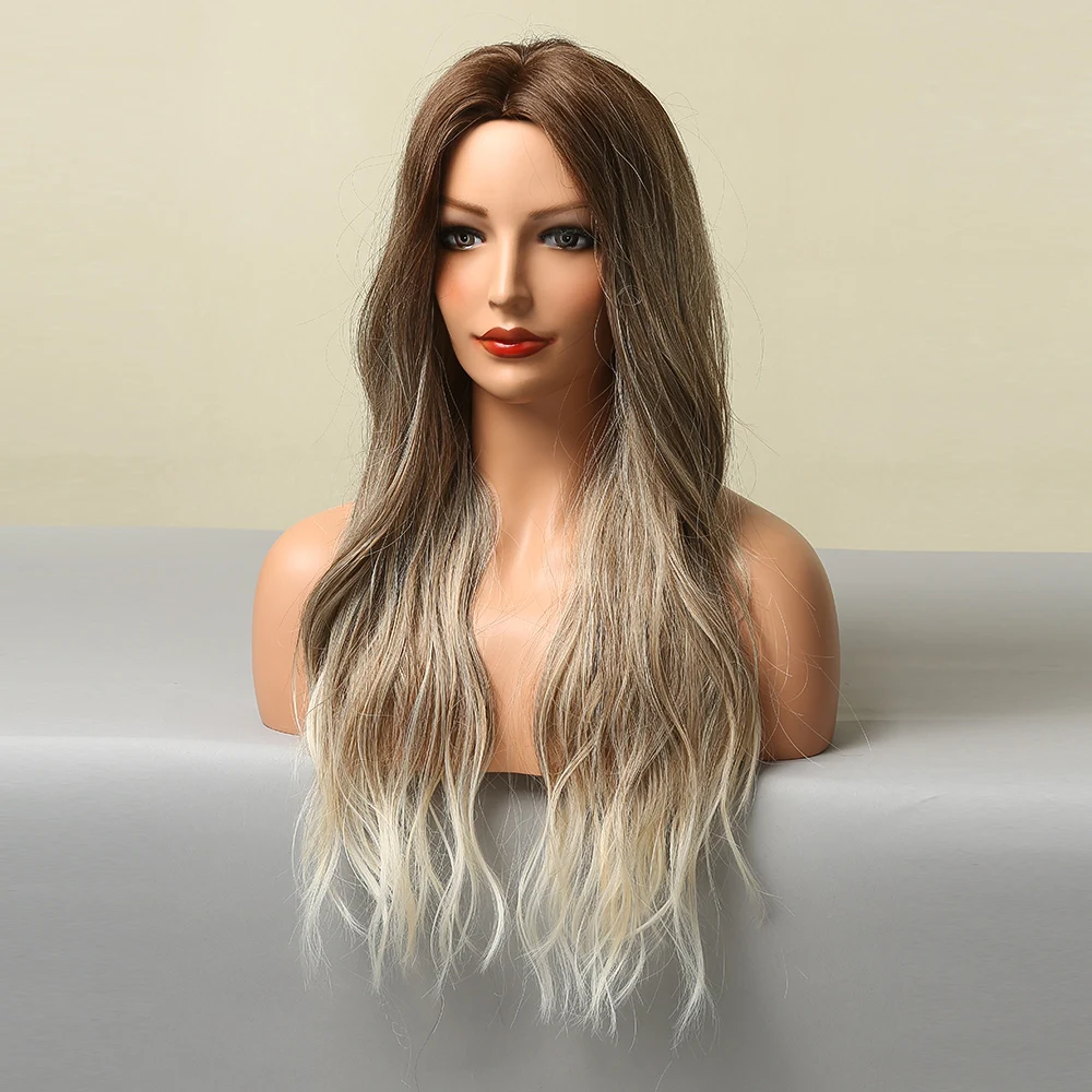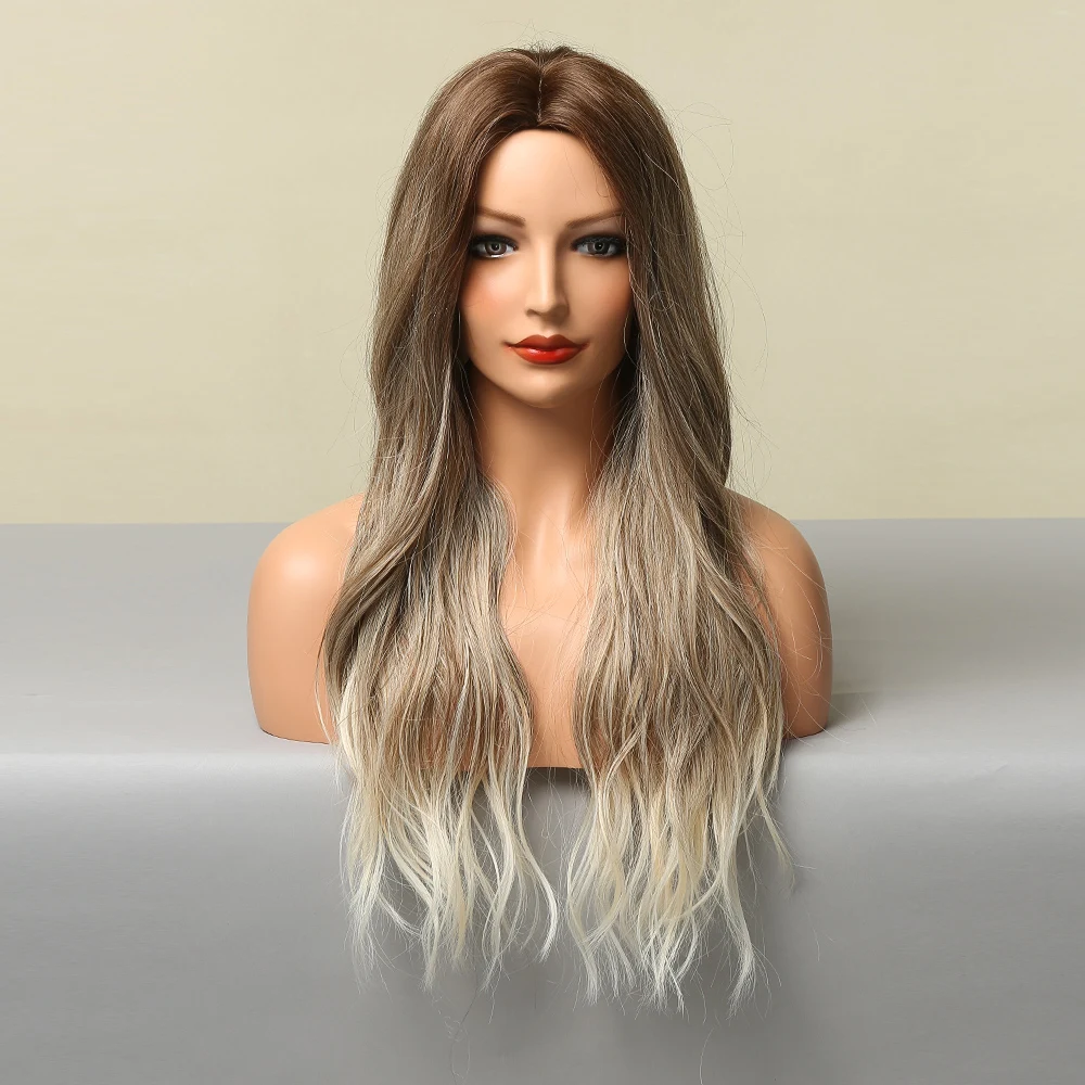 Парики LOUIS FERRE для белых женщин, длинные волнистые, коричневые, светлые, синтетические, для косплея, средняя часть, Термостойкое волокно, парики из натуральных волос для вечеринки