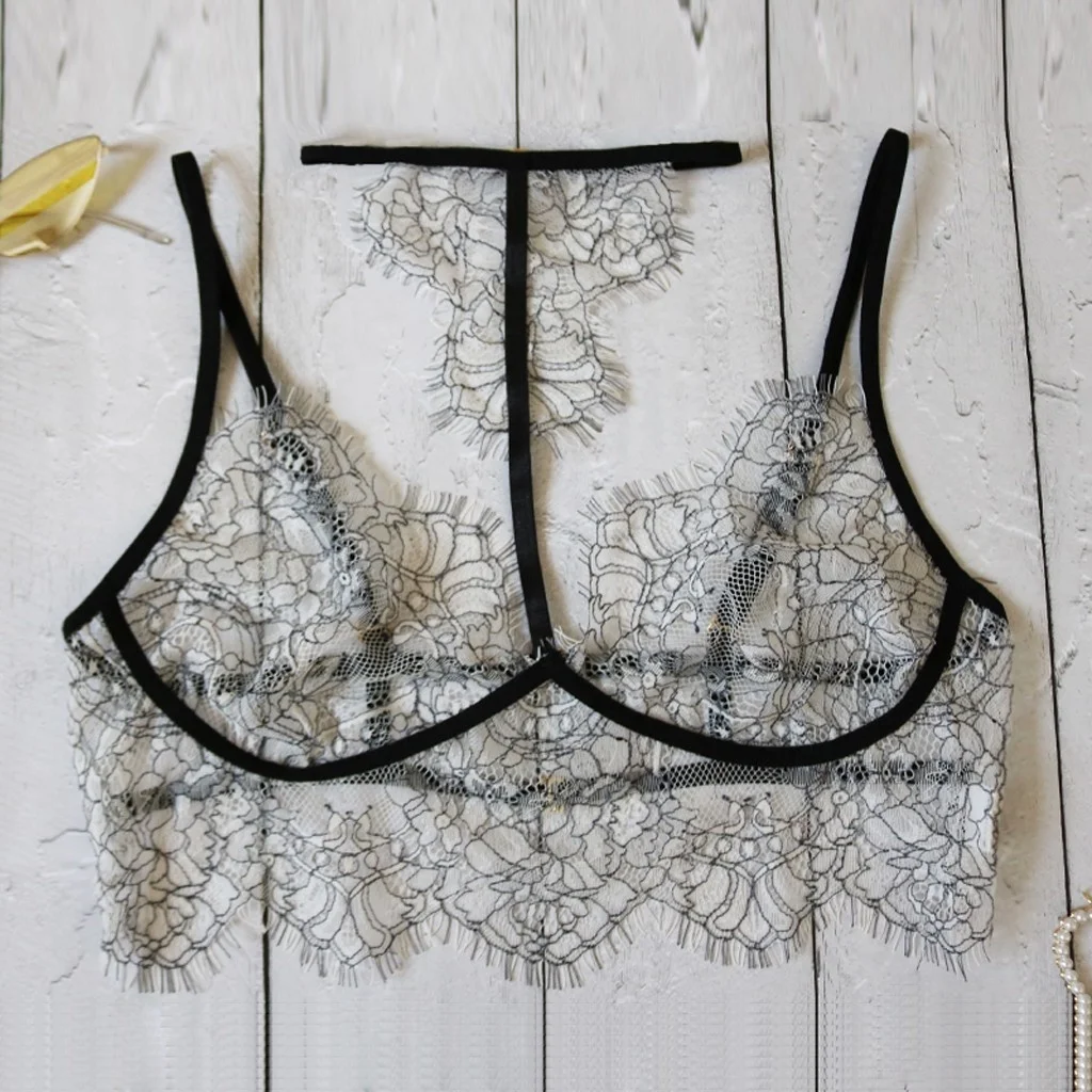 Комплект женского кружевного нижнего белья, с вышивкой и бретельками