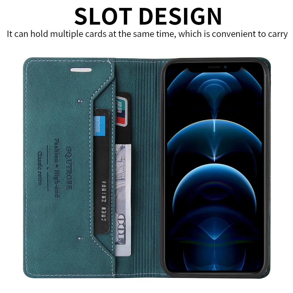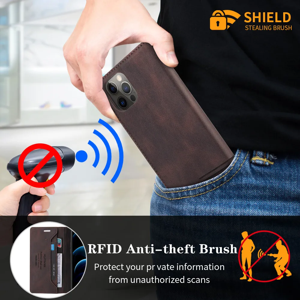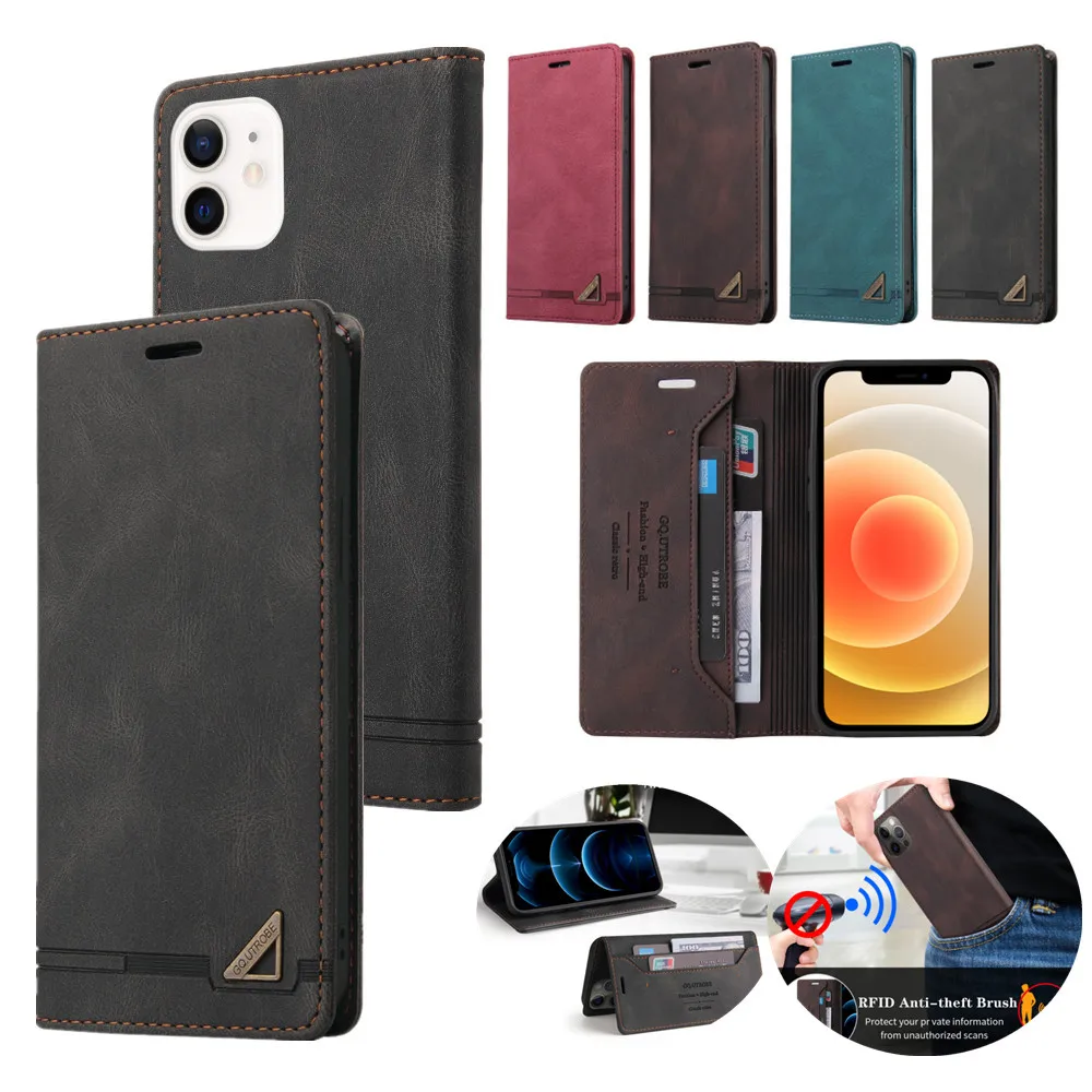 Кожаный чехол-бумажник для телефона iPhone 13 12 Pro Max 11 Xs XR SE2020 7 8 Plus RFID Противоугонная щетка магнитная защита откидная крышка