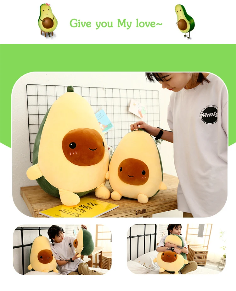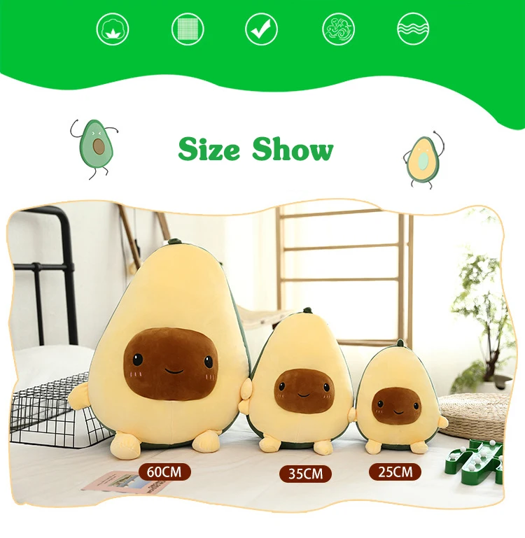 Смайлик авокадо, мягкие плюшевые игрушки, наполненная кукла, мягкая диванная подушка с растениями, мультяшная Подушка с фруктами, мягкая подушка, детские подарки