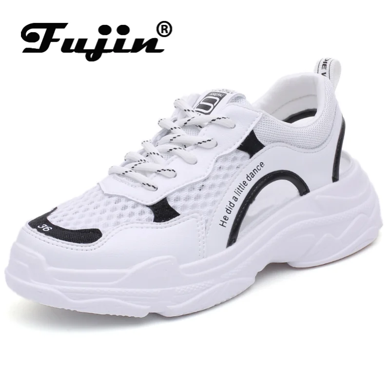 Fujin2021; Женская летняя обувь; Сандалии; Цвет белый; Ins; Обувь для папы; Не сужающийся книзу массивный кроссовки; Дышащая сетчатая обувь на платформе; Удобная обувь; zapatos para mujer