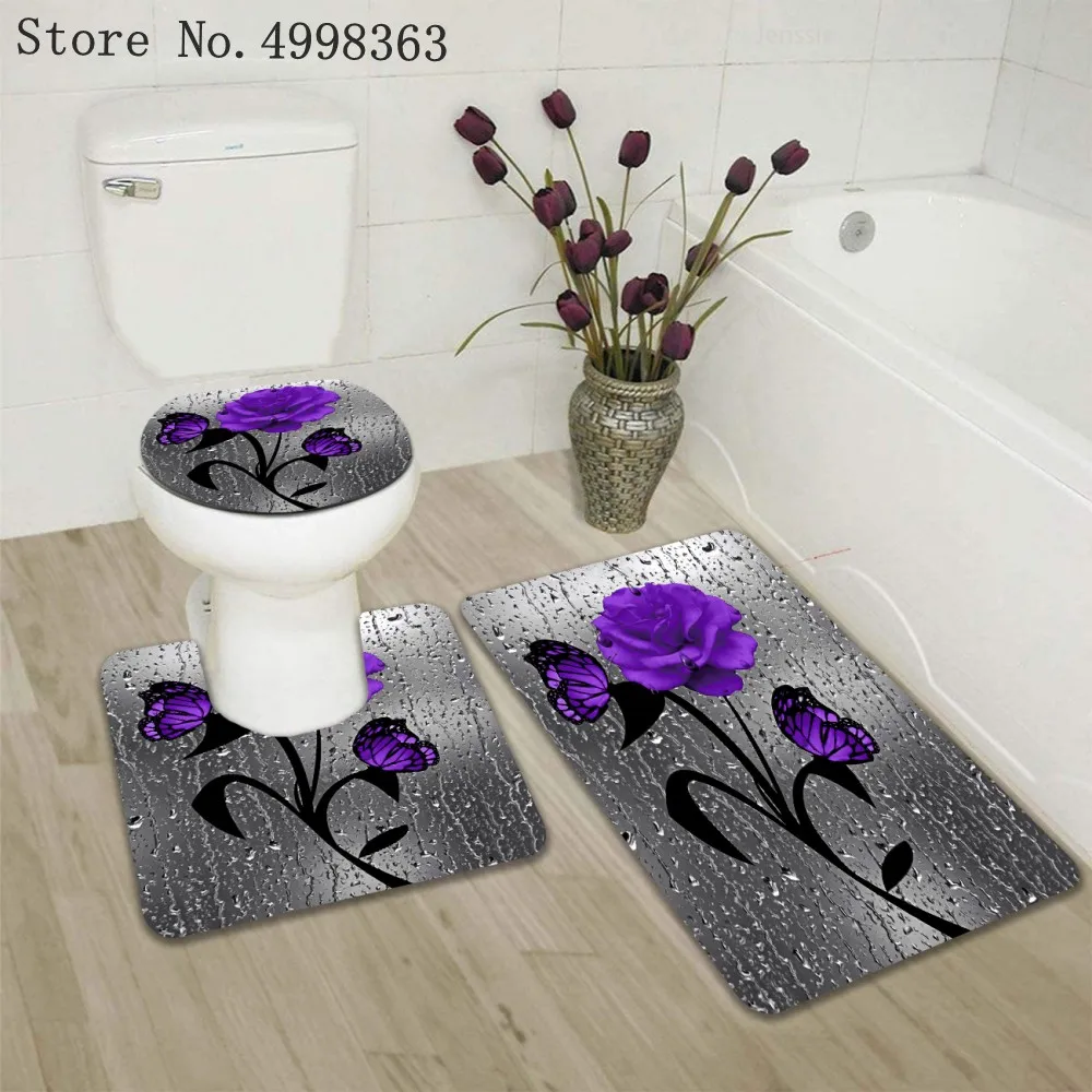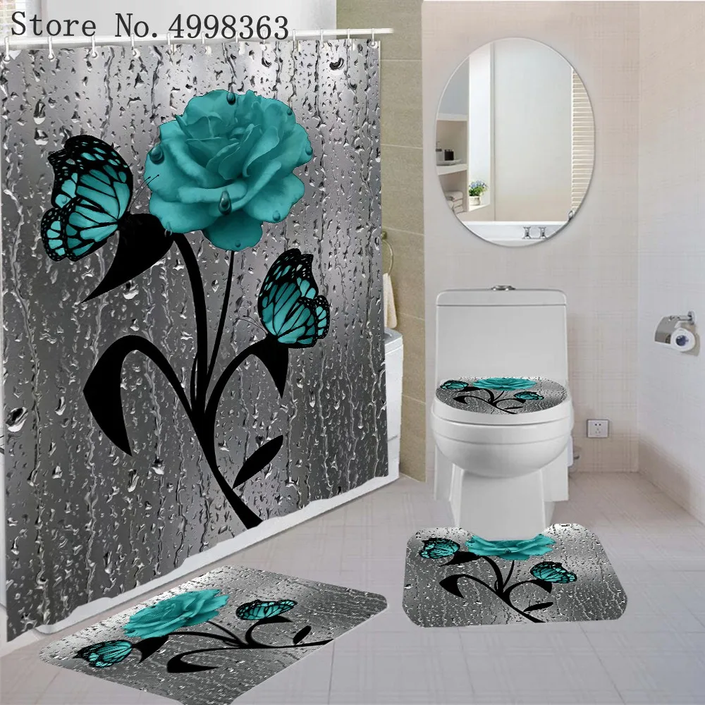 Бабочка Роза занавеска для душа нескользящий коврик набор цветок для ванной занавеска и крышка для унитаза коврик для ванной 34 шт. Декор для ванной