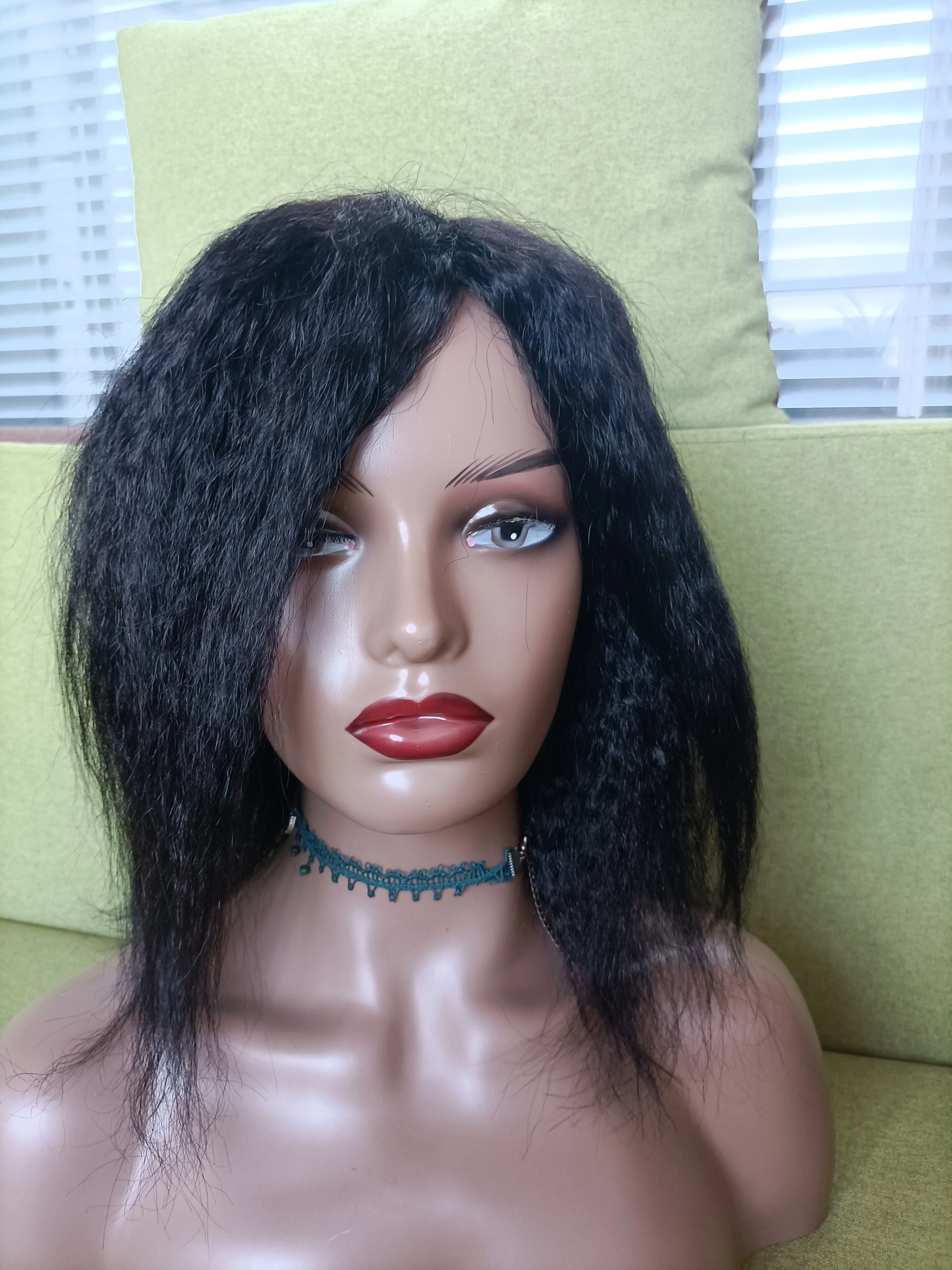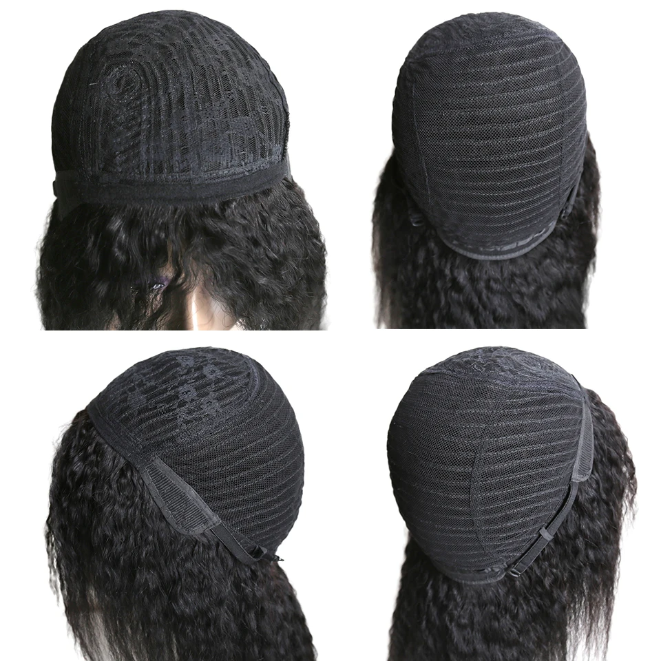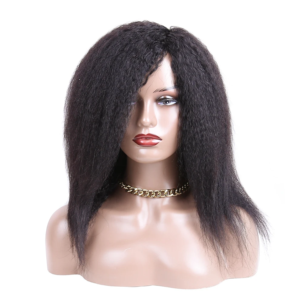Кудрявые прямые парики из человеческих волос, парик для женщин, парик из человеческих волос Yaki, парик из неповрежденных волос, парик с бахромой, натуральный черный, 12-26 дюймов
