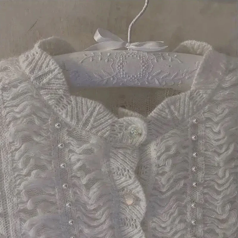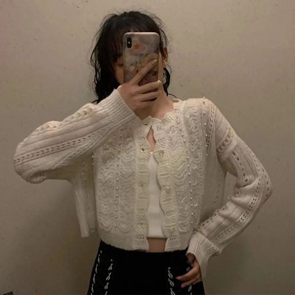 Кардиганы женские однотонные в стиле ретро с жемчугом и вырезами ми...