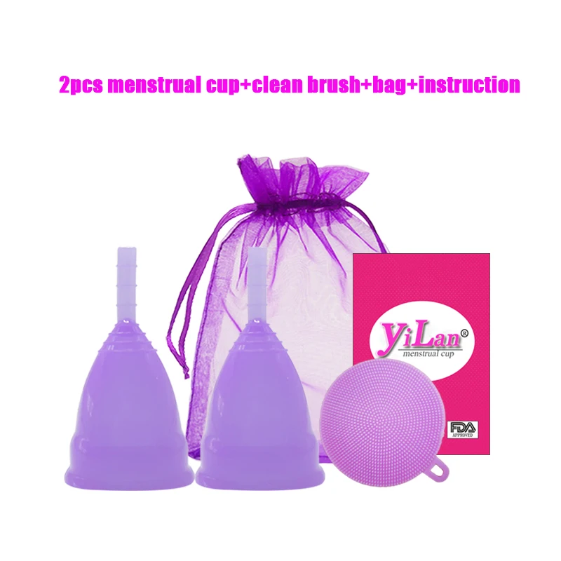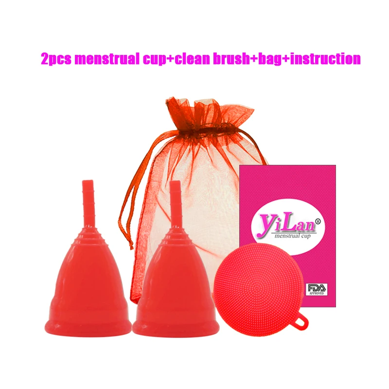 Packing12pcs menstrual cup+clean brush+cloth bag+ instruction