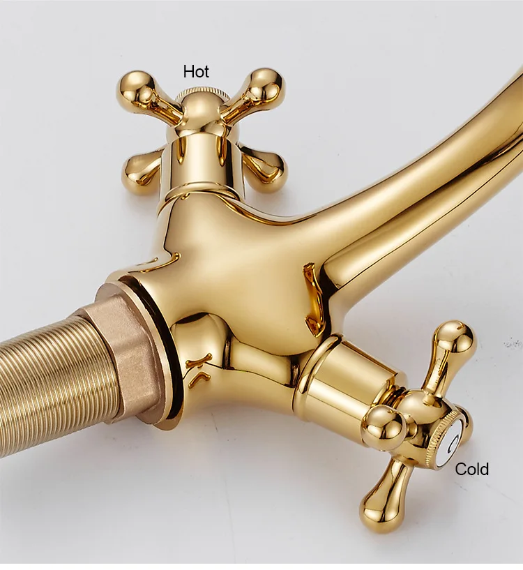 Золотистый смеситель с двойной ручкой, античный кран для ванной, твердая латунь, бронза, для кухни, ванной комнаты