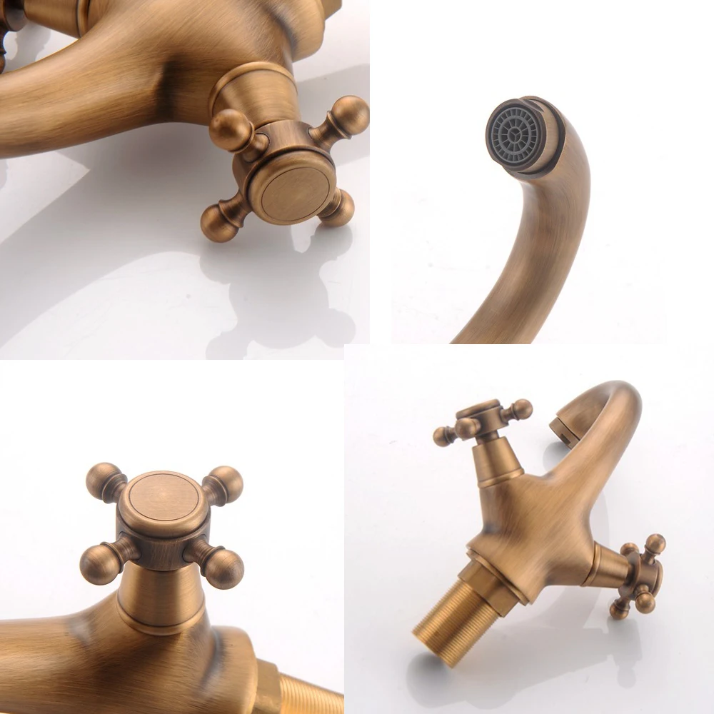 Античный латунный Смеситель для раковины в ванную комнату, двойные ...
