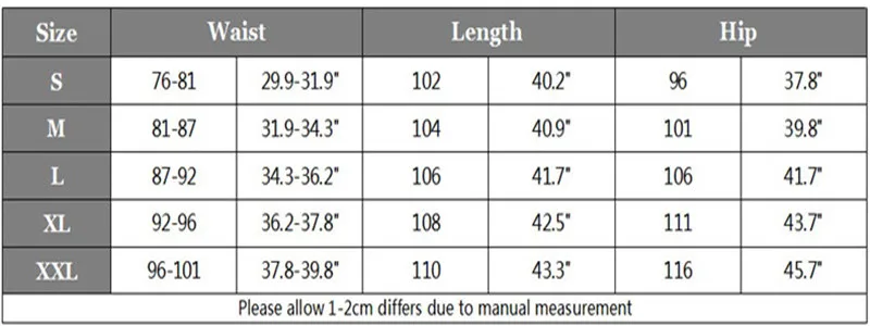 Таблица размеров-это Азиатский размер (меньше, чем размер США и евро), возможно, вы можете выбрать на 1 размер больше, чем обычно. (Есть погрешность в 1-3 см, если вы не уверены в размере, пожалуйста, отправьте мне информацию о вашем росте, весе и груди, Я помогу вам выбрать правильный размер.)