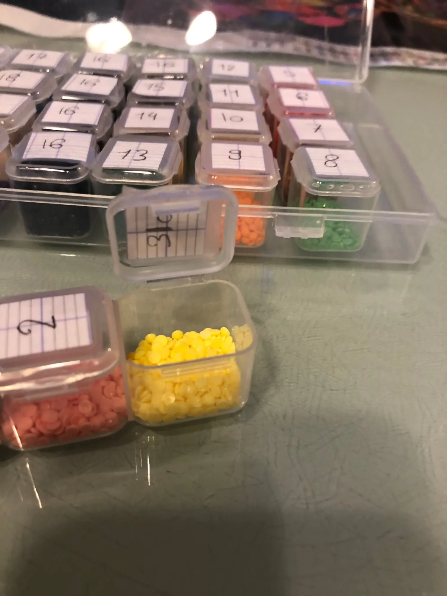 bonita caja para guardar cuentas o diamantes al acabar los cuadros. Las cajitas con pequeñas pero lo suficiente grandes como para guardar los sobrantes de los trabajos que se realizan. Estupenda caja.
