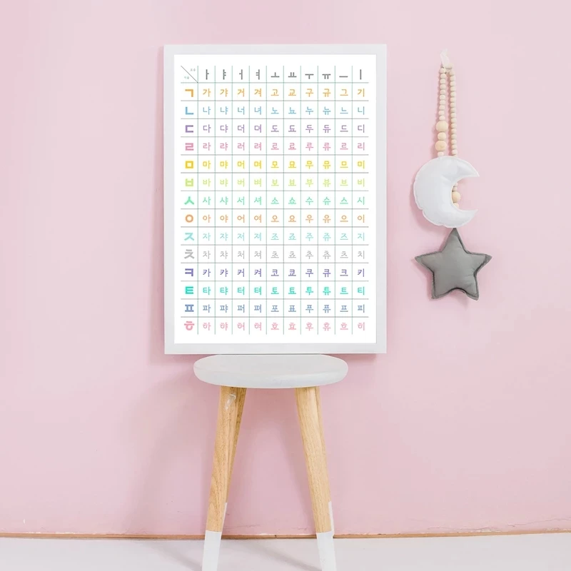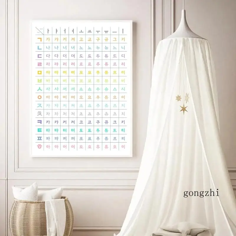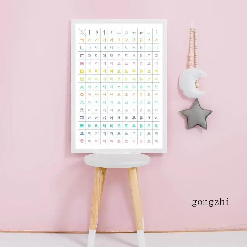 Красочные корейские принты алфавита Hangul, Постер для кабинета, картина для детей, образовательные настенные картины, декор для спальни