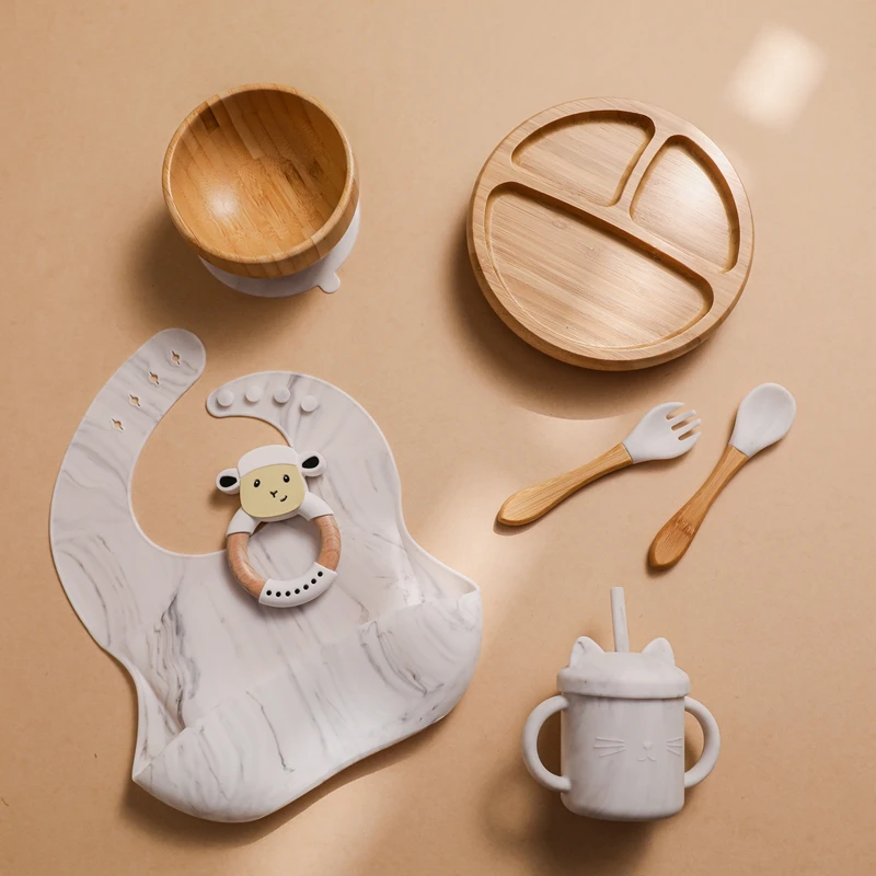 Силиконовая детская столовая посуда, Детская бамбуковая посуда с ча...