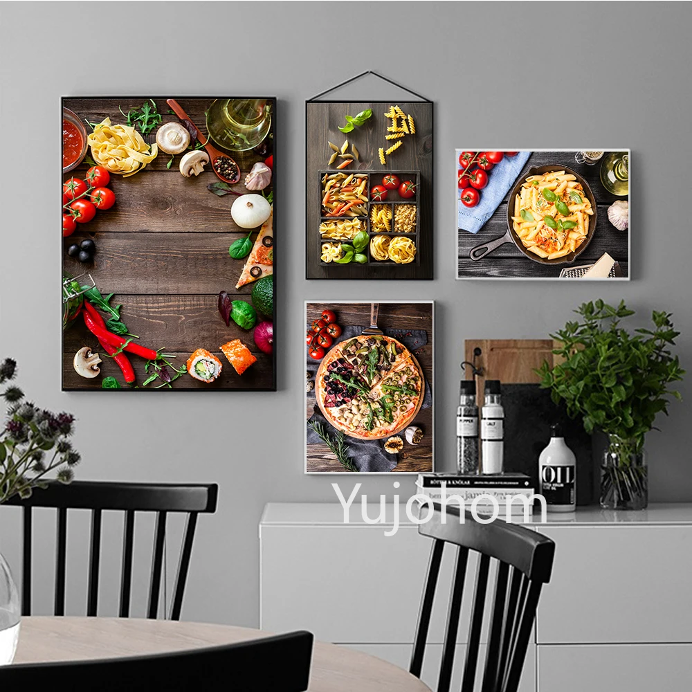 Итальянская еда макароны и пиццы фрукты вино кухня домашний декор фотографии для столовой гостиной настенные плакаты принты картины на холсте