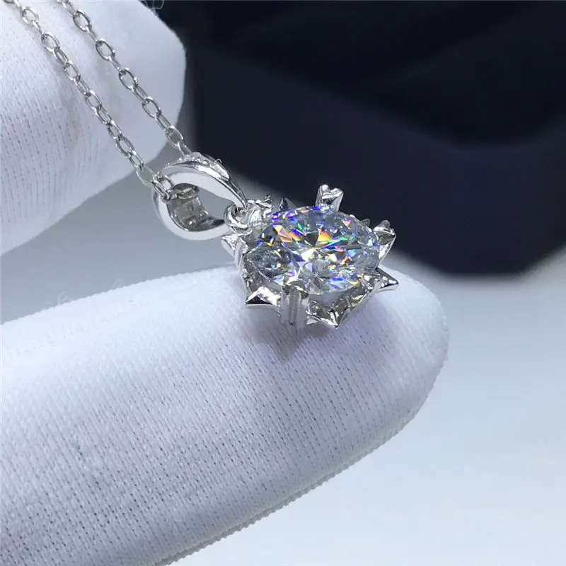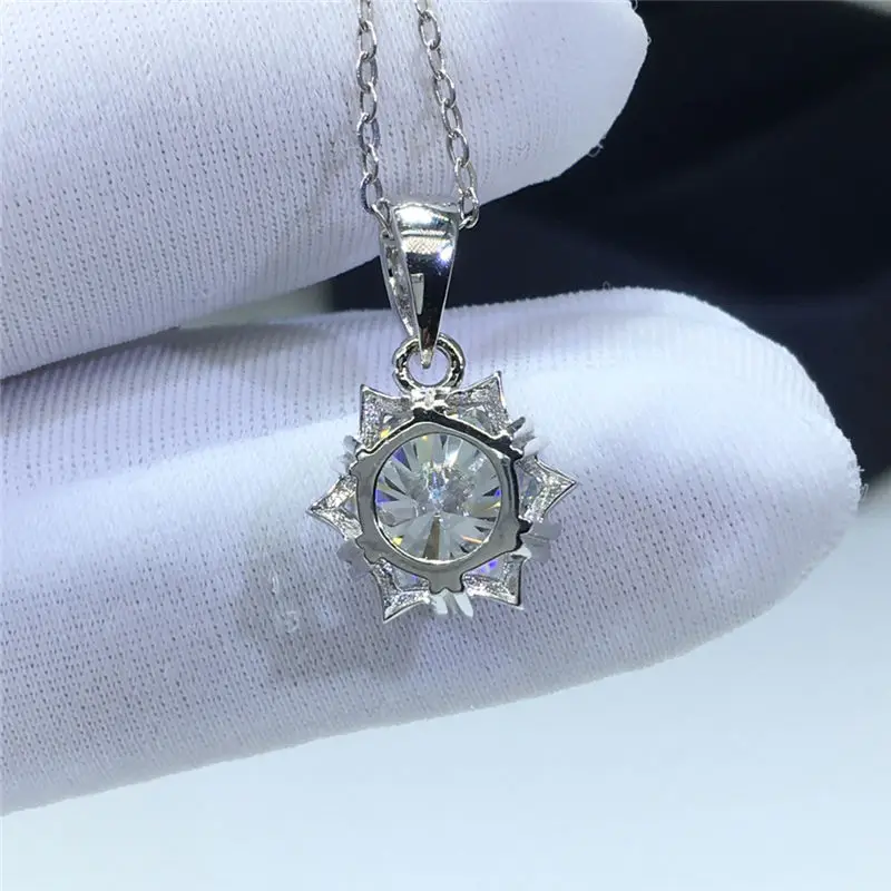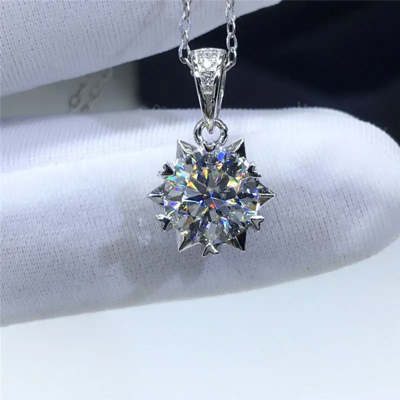 Ожерелье с кулоном в виде снежинки муассанита, серебро 925 пробы, 2 карата