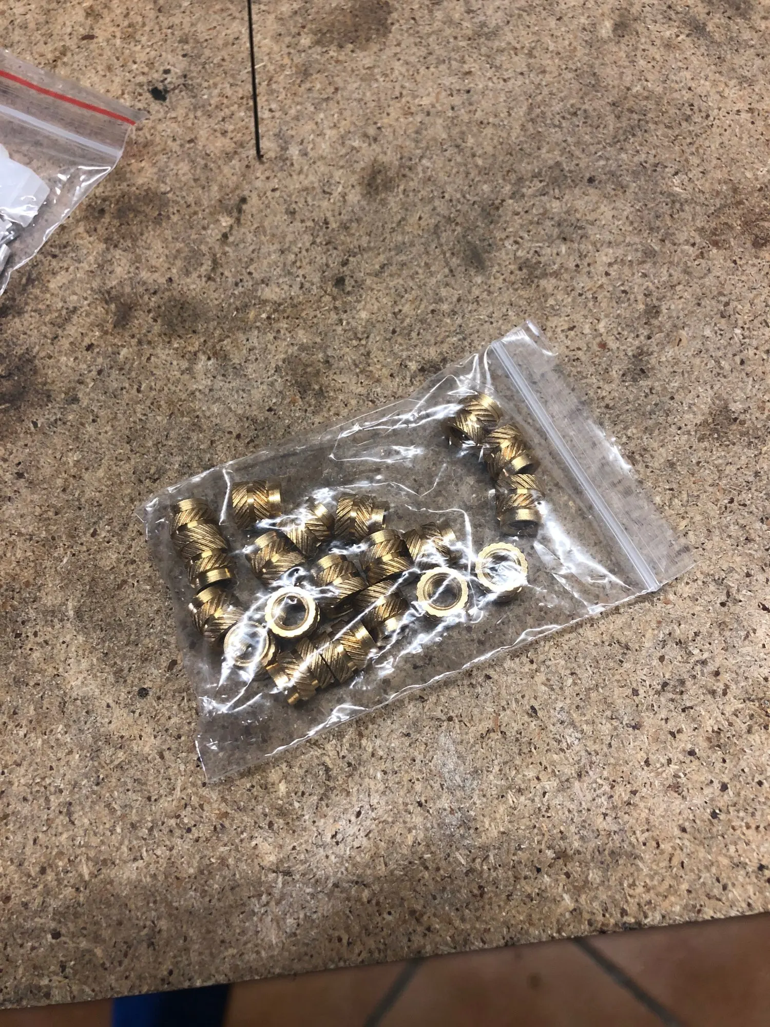 Легко установить в отверстие соответствующего размера в части с помощью паяльника. Многочисленные лопасти и гребни вокруг вставки позволяют пластику проходить между ними, создавая прочную связь с печатной частью.