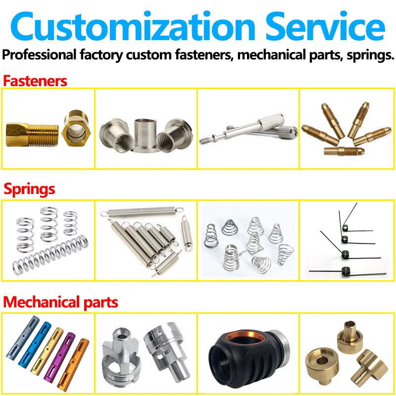 Индивидуальное обслуживаниеМы являемся комплексным заводом с различным производственным оборудованием, таким как автоматические станки, станки с ЧПУ и пружинные машины. Может производить все виды крепежных деталей, механических деталей и пружин.