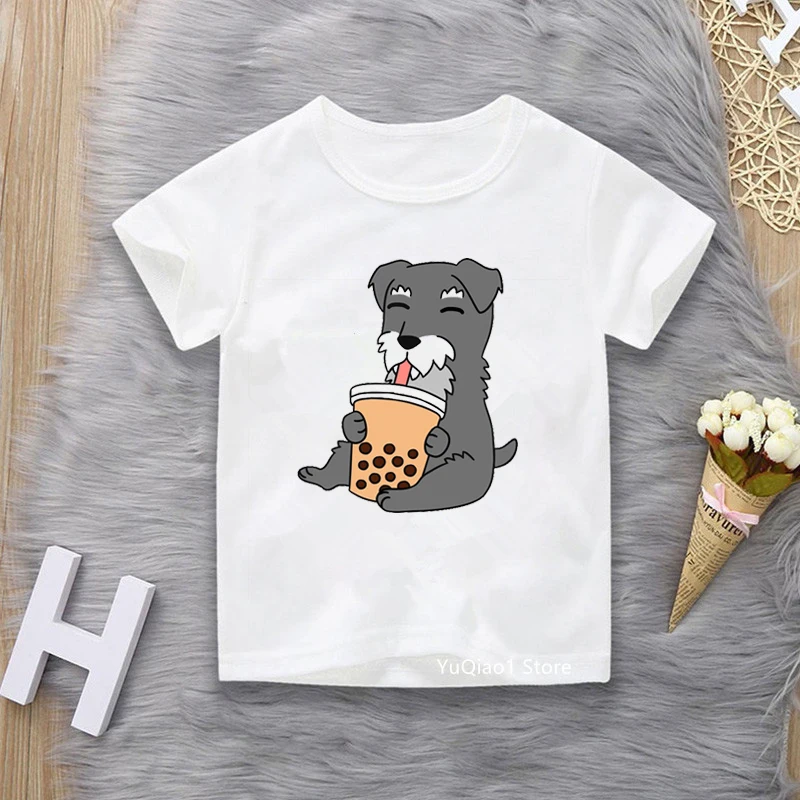 Милая Белая Детская футболка с рисунком пуделя, шнауцера, шиhtzu, к...