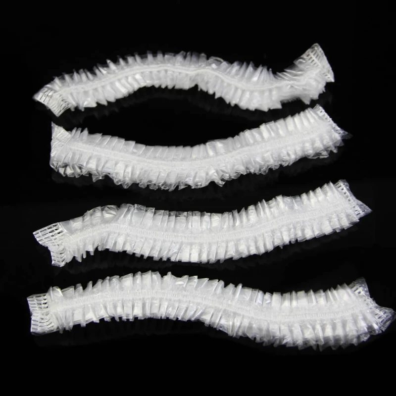 Одноразовые прозрачные эластичные шапочки для душа, 100 штук