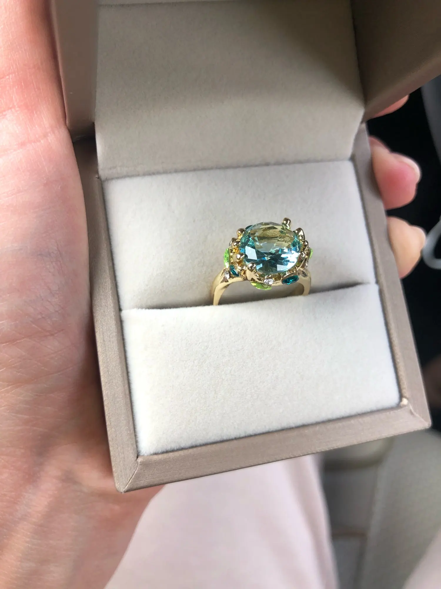 Классическое кольцо Морской голубой кристалл для женщин, европейски...