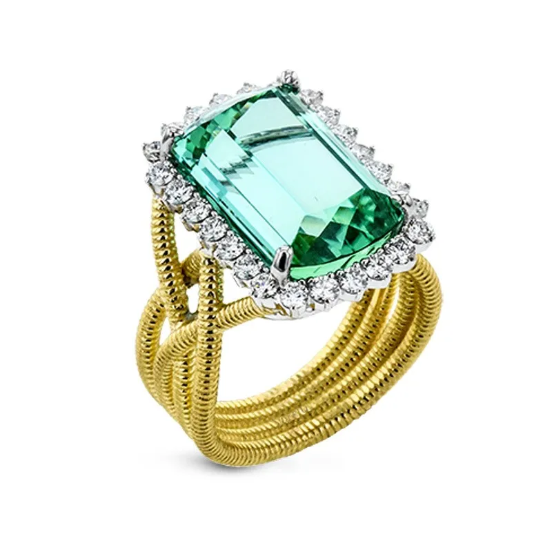Модное женское кольцо Стразы с зеленым и белым кристаллом в виде ми...