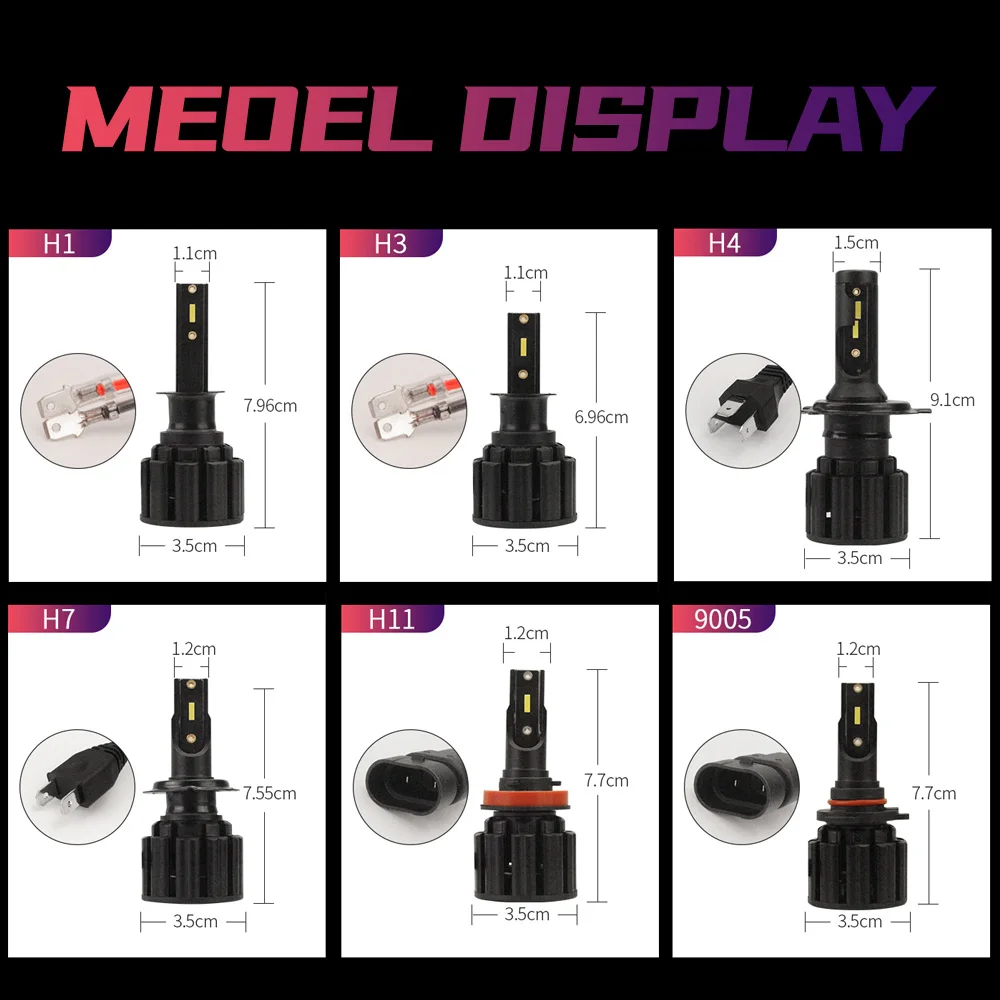 Информация о продукте 1. Мощность: 80 Вт 2. Лампы: ZES 1860 светодиодные чипы 3. Напряжение: 12 В 4. Срок службы: >50000 часов (часов) 5. Цветовая температура (цвет): 6500K 6. Люмен (яркость): 16лм 7. Функция: защита от помех EMC 8. Светодиодные модели: H1, H3, H7, H11/H8/H9, 9005/HB3/H10, 9006/HB4, H4/HB2/9003