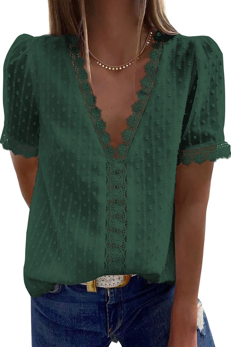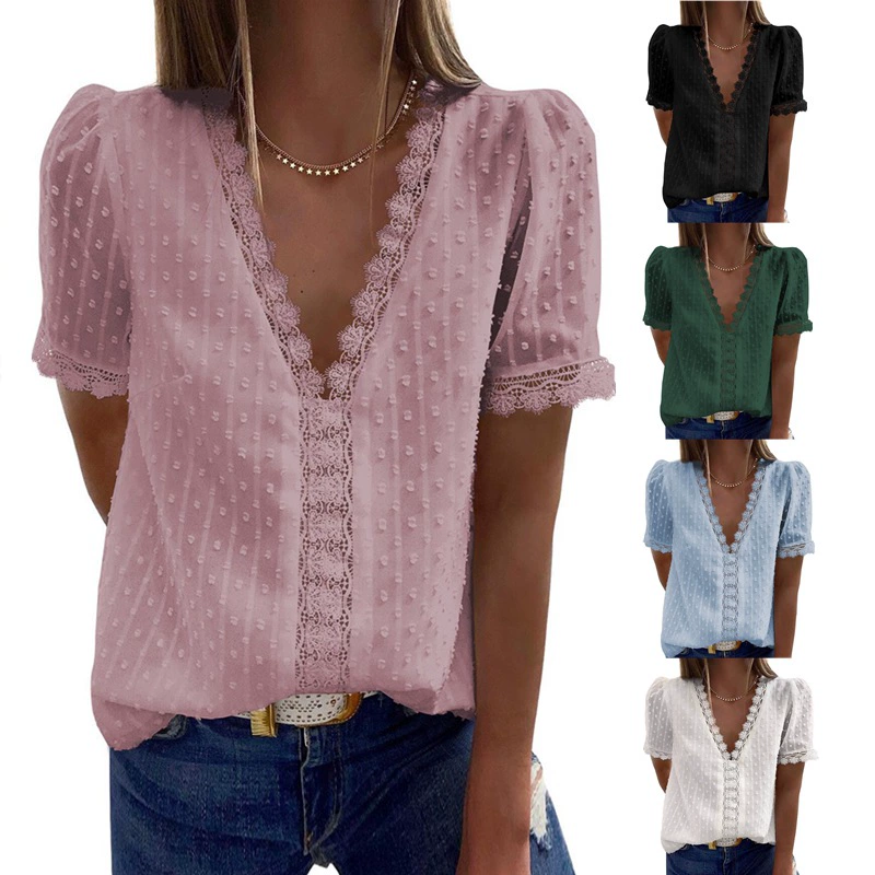 Женская шифоновая блузка в стиле бохо, элегантная повседневная блузка с цветочным принтом, украшенная кружевом, большие размеры, лето 2022