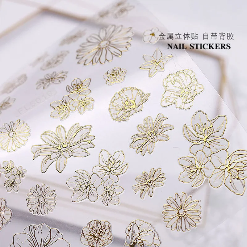 Слайдеры для маникюра, объемные, золотые, наклейки для ногтей цветы...