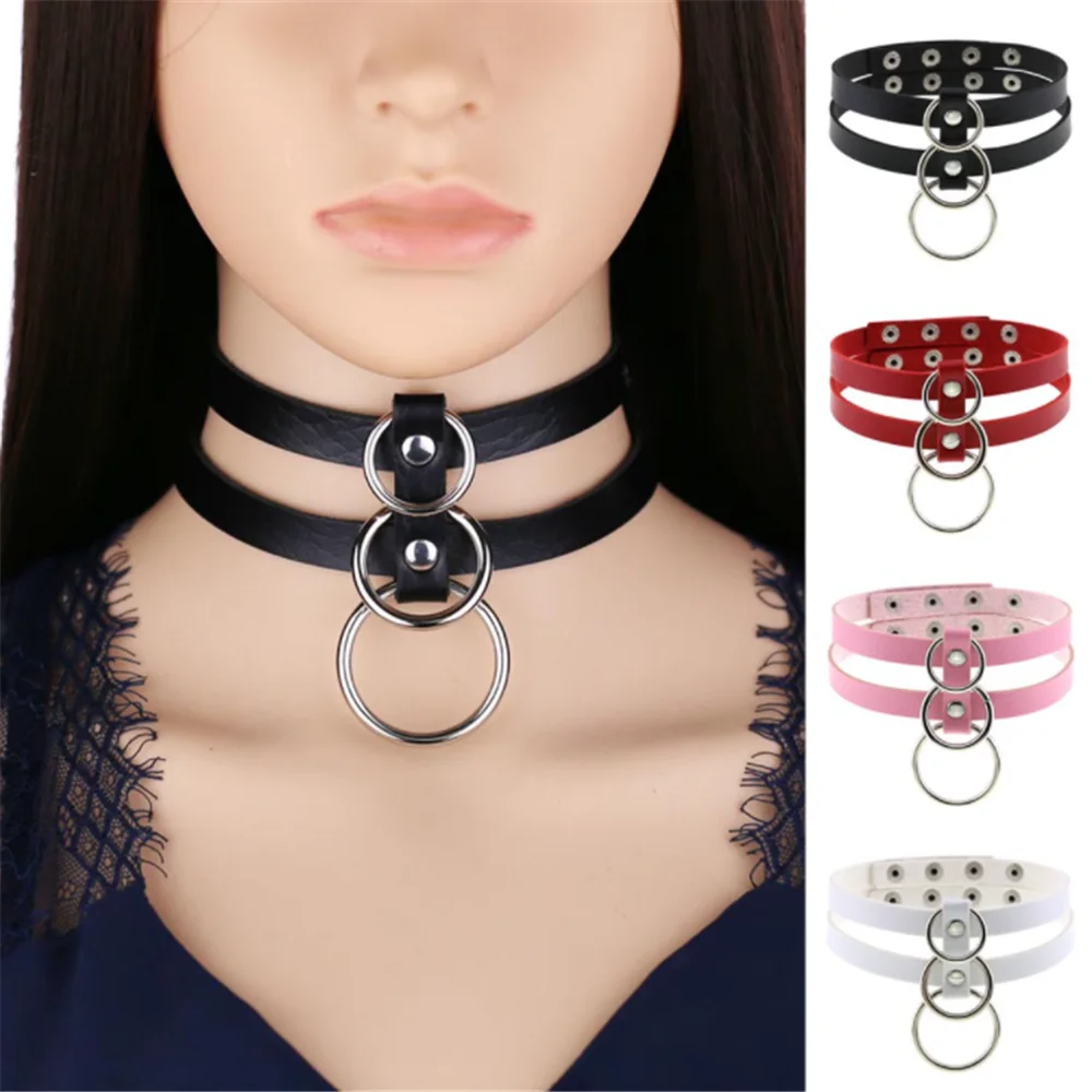 DIEZI Панк косплей готика, Харадзюку многослойный, из полиуретановой кожи Чокеры Ожерелье Женщины Мужчины круг кулон массивные ожерелья ювелирные изделия