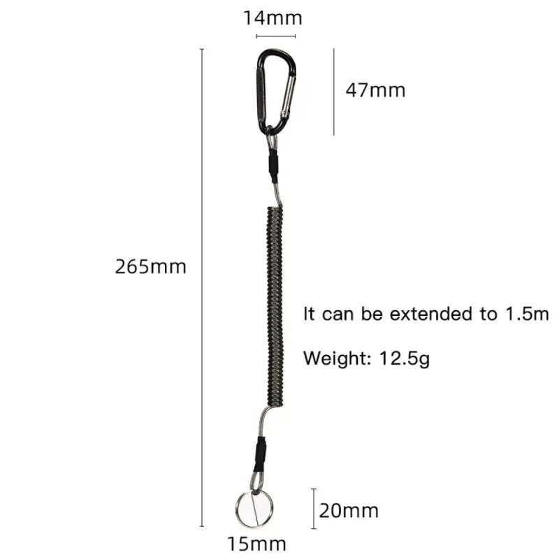 Один зажим и одно металлическое кольцо на каждом конце, которое можно закрепить на вашей рыбалке, окуните в сеть, рыболовное ведро и удочку. Отлично подходит для крепления любых инструментов, стержней, катушки для любой ситуации, включая кемпинг и все виды рыбалки. Катушка имеет отличную память и возвращается обратно к маленькой плотной катушке после использования. Эта эластичная веревка удовлетворяет требуемую длину.
