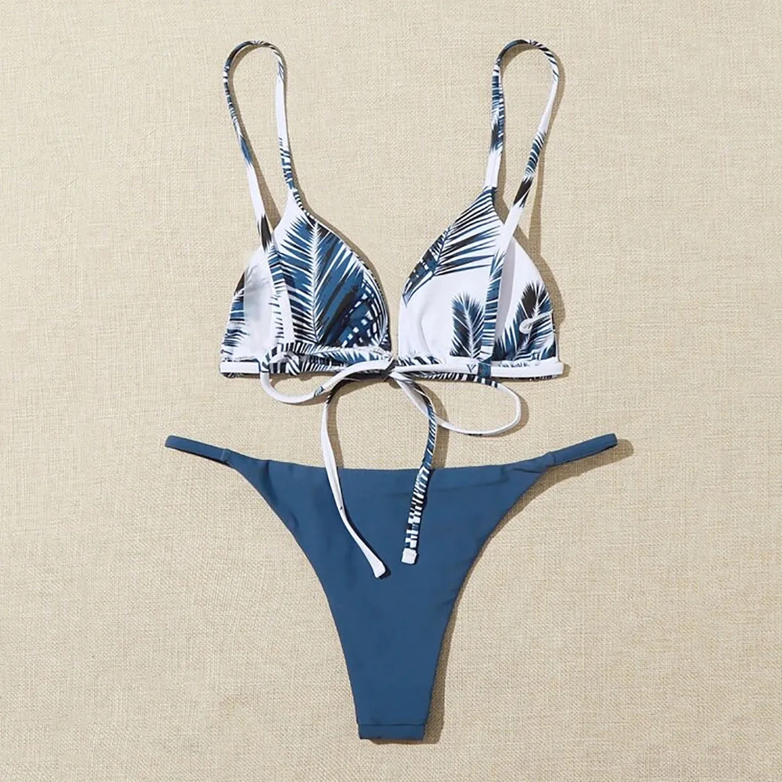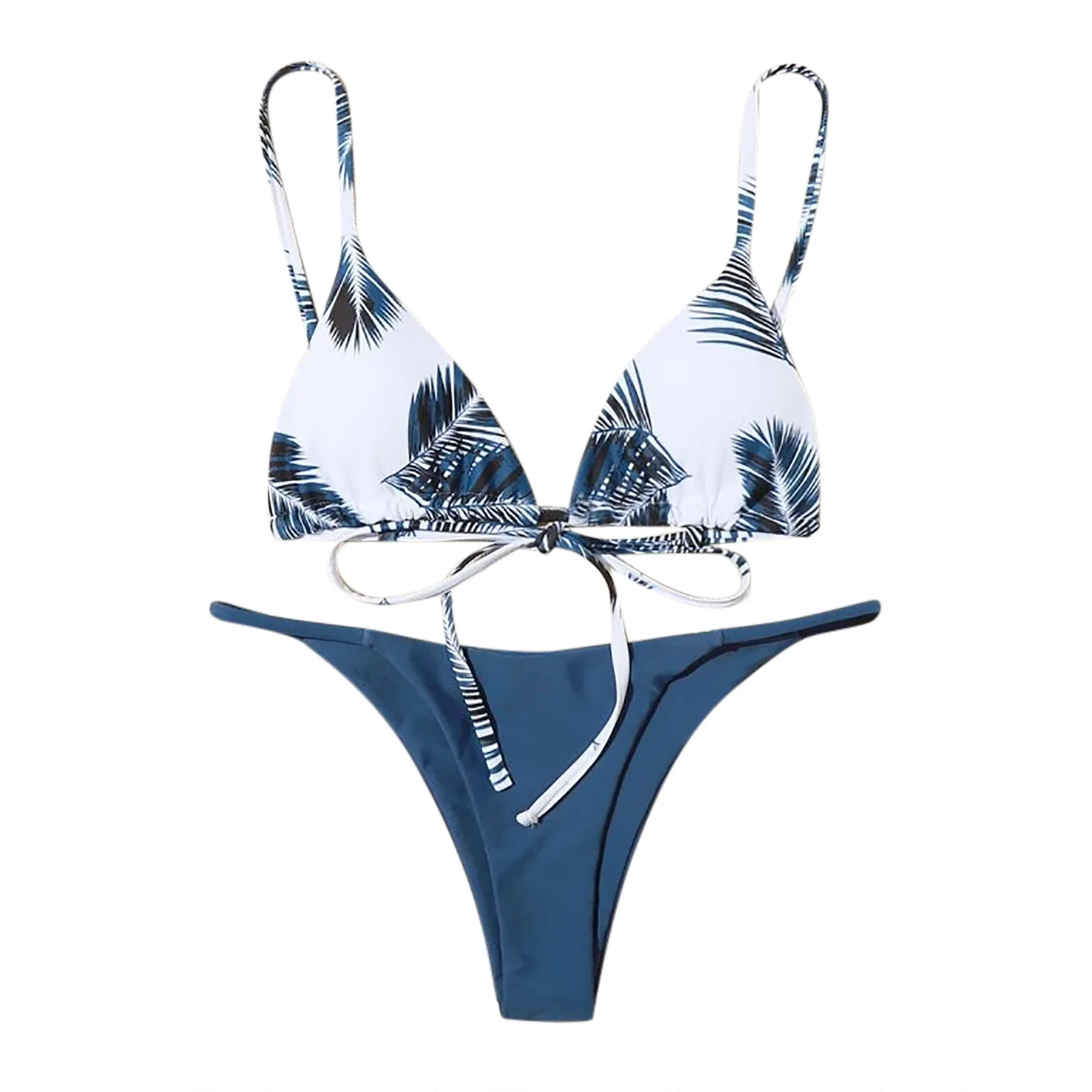 Женский модный комплект бикини, пикантный однотонный купальник-бикини с принтом листьев, Раздельный купальник с высокой талией, сексуальный контрастный купальник F4 *