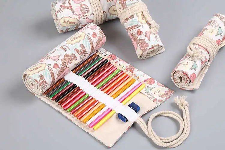 36 отверстий рулон Цветной Карандаш Чехол Kawaii школьный холщовый ...