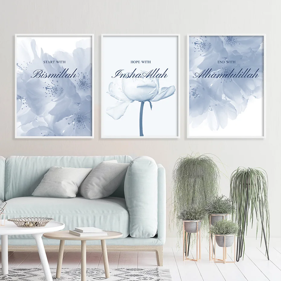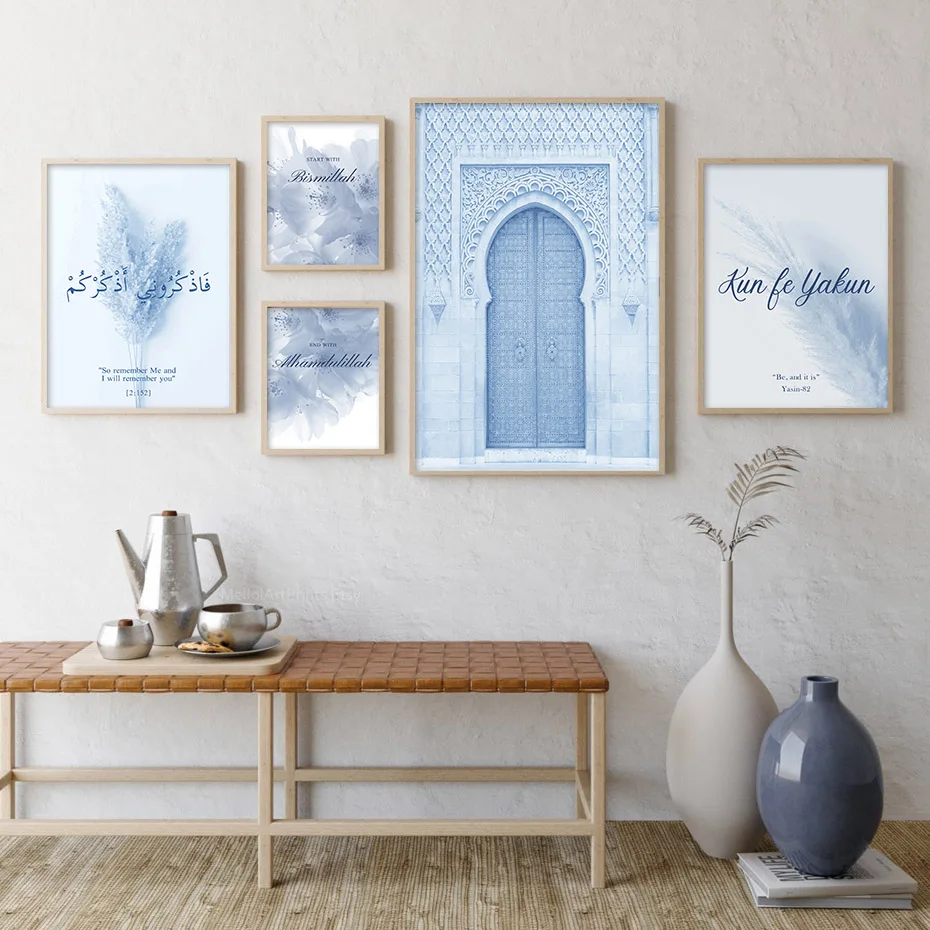 Синяя детская живопись исламских каванов Сура Бисмиллах настенные х...