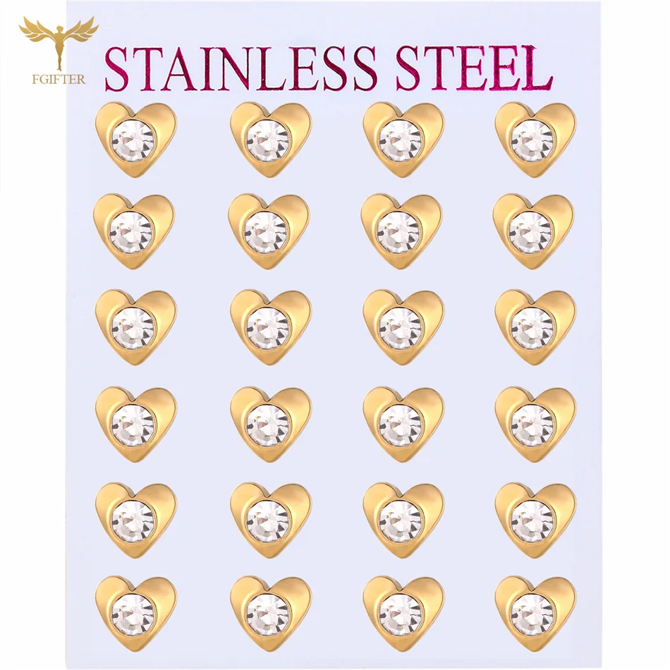 12 пар, женские серьги-гвоздики из нержавеющей стали