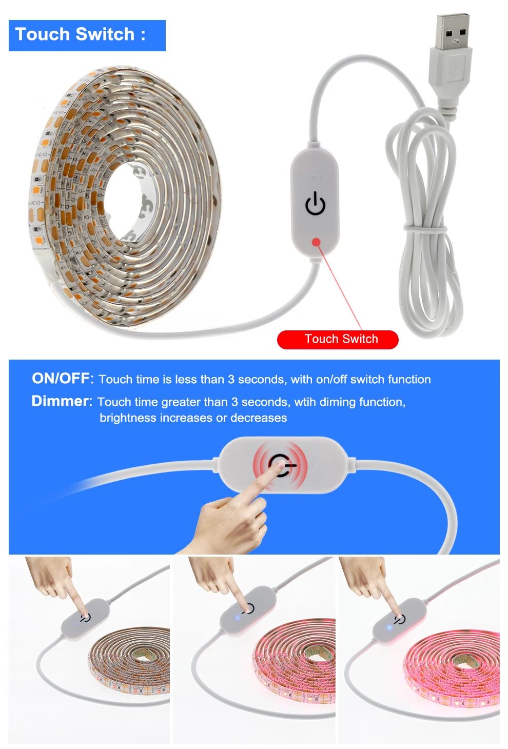 Светодиодная лента DC5V, USB сенсорный переключатель, светодиодная ...