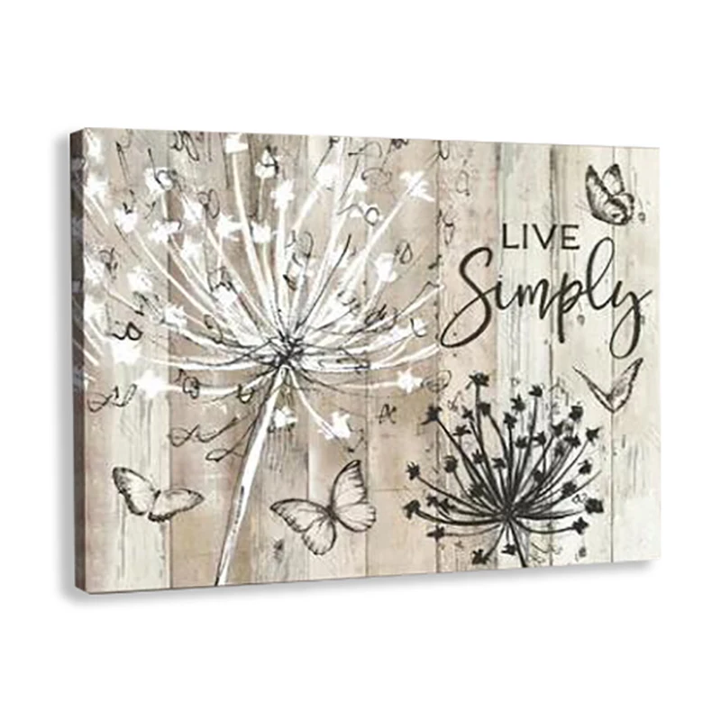 Live простой вдохновение мотивация номер Плакаты светильник фон с изображением коричневого деревянного фон деревенский дом Одуванчик Холст Картины Настенный декор