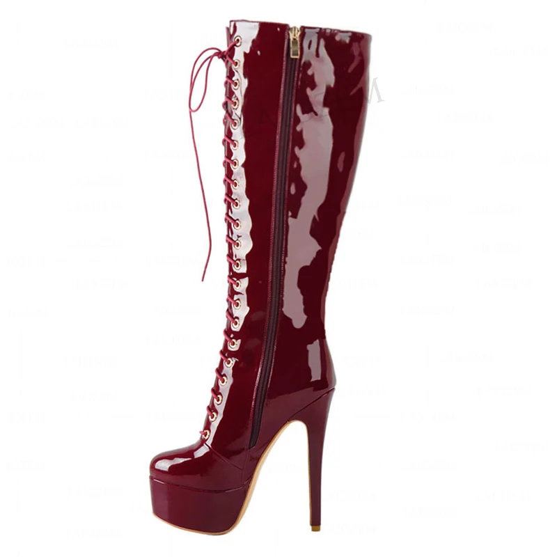 SEIIHEM/женские сапоги до колена, на молнии, на высоком каблуке-шпильке, блестящая Регулируемая обувь на шнуровке, женская обувь, Sapato Feminino, большой размер 42, 52