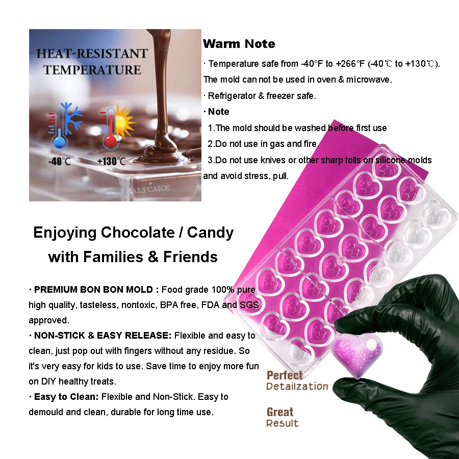 1. Используйте пищевые пластмассы, которые соответствуют FDA и SGS.2. Наши формы тяжелее, толще, прочнее и имеют более длительный срок службы! 3.отсутствие вредных веществ, обеспечение безопасности и здоровья! 4.мы обеспечиваем бесплатную доставку во многие страны! 5.наша поверхность формы гладкая и не подвержена царапинам.