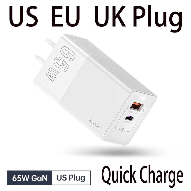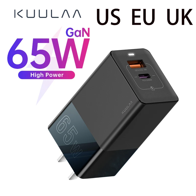Зарядное устройство KUULAA GaN, 65 Вт, быстрая зарядка 4,0, 3,0, USB Type-C, QC, PD, для iPhone, Samsung, Xiaomi