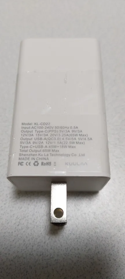 USB-A + C зарядное устройство Входное напряжение: AC100-240V USB-C Гц Выходное напряжение: USB-A 5V3A/9V3A/12V3A/15V/3A/20V3.25A(65W) 3,6 6,5-V/3A, 6,5-9 В/2 А, 12 В/USB-C А (20 Вт) двухпортовый Выход: USB-A (45 Вт) + (20 Вт)