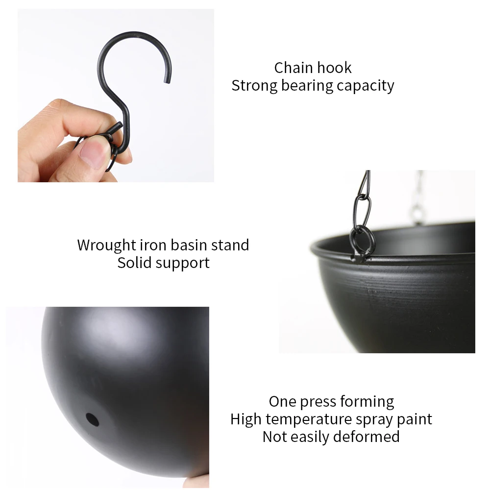 -- Зажимы цепи на кольце в верхней части висящей корзины, помогая сохранить баланс при подвешивании.