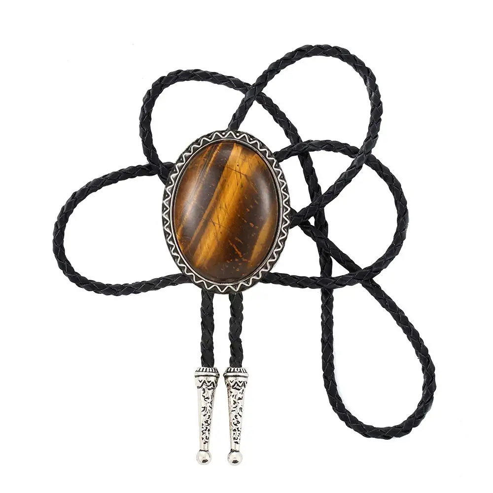 Мужскойженский Галстук боло, природный камень Опаловый камень, подвеска, кожаная веревка колье галстук-бабочка