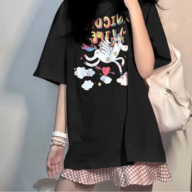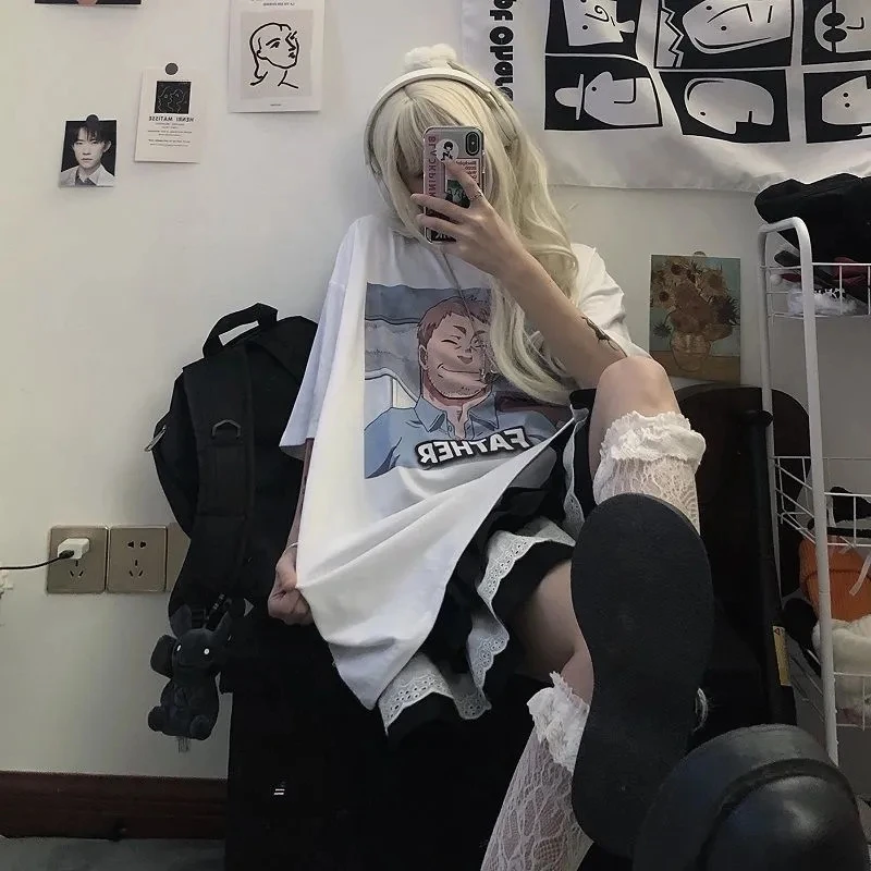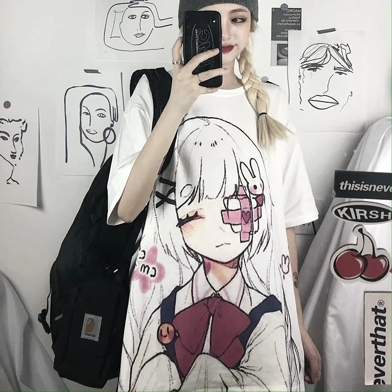 Летняя свободная футболка с коротким рукавом, женская одежда в стиле Харадзюку, y2k, сексуальные милые Мультяшные панковские готические футболки большого размера, Женский Топ