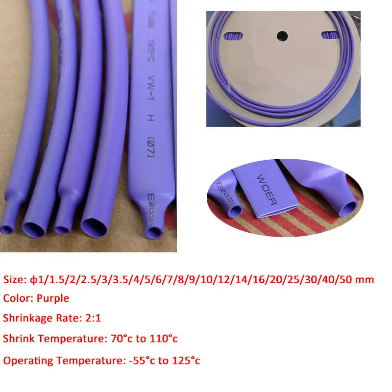 Термоусадочная термоусадочная трубка для кабеля 2:1, электрическая трубка для кабеля, фиолетовая, 1 - 50 мм