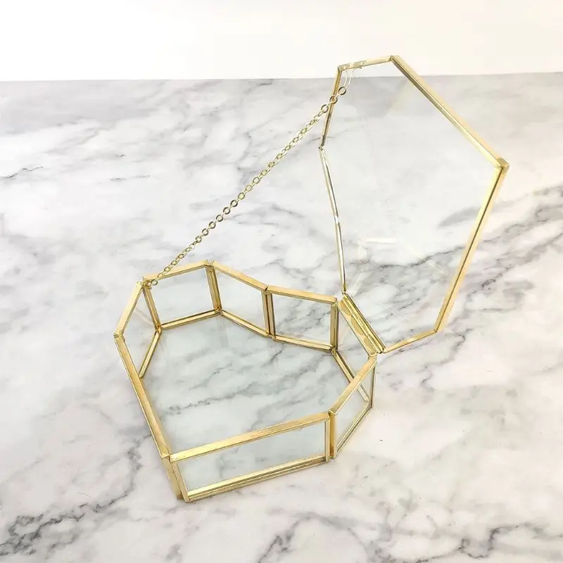 Шкатулка для хранения свадебных колец, стеклянная коробка для украшения для террариума, зеленая стеклянная коробка для колец