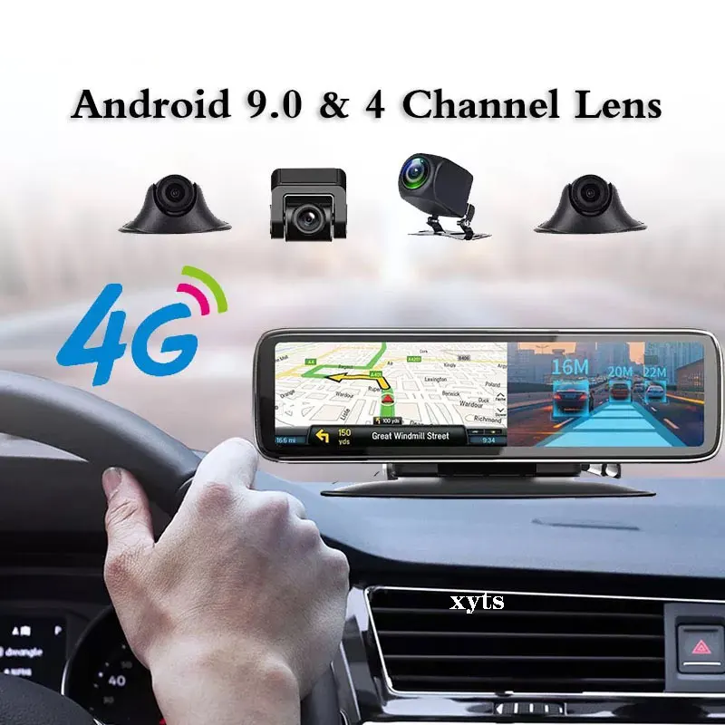 Видеорегистратор, 4G, Android 9.0, 12-дюймовый панорамный видеореги...